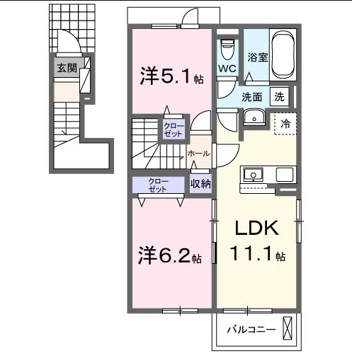 | 間取 | 2LDK | 間取詳細 | 洋6.2 洋5.1 LDK10.6 |
