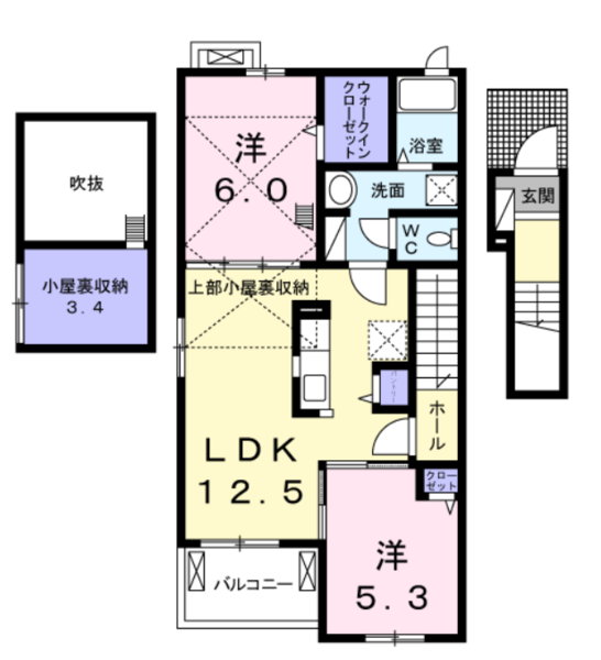 | 間取 | 2LDK | 間取詳細 | LDK12.5 洋6 洋5.3 |