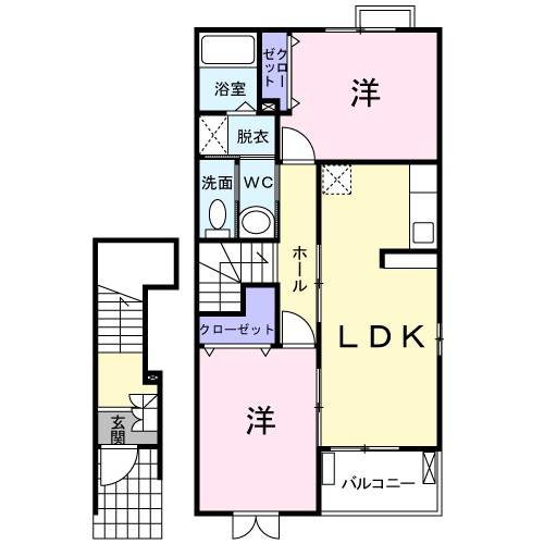 | 間取 | 2LDK | 間取詳細 | 洋6帖×2 LDK10.2帖 |