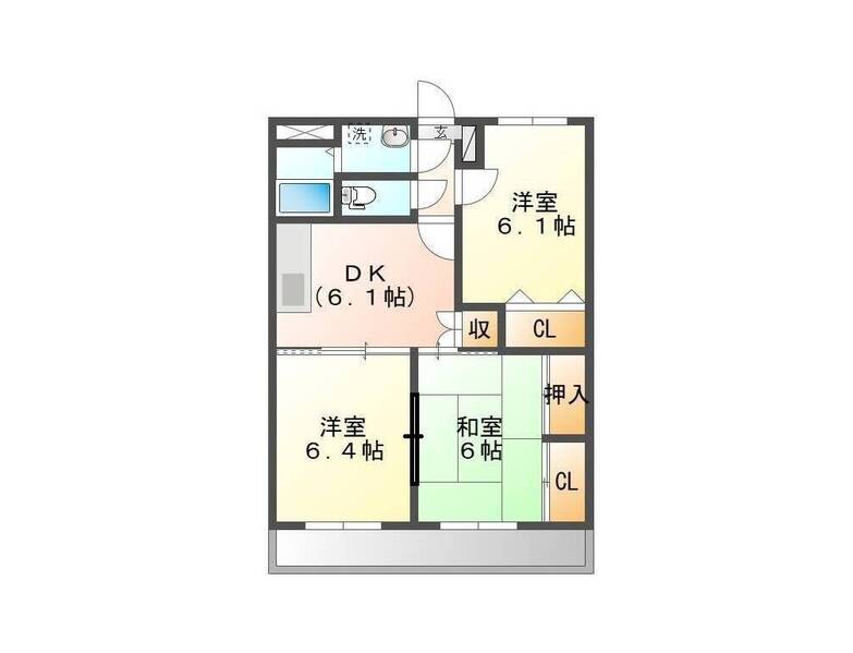 | 間取 | 3DK | 間取詳細 | 和6 洋6.1 洋6.4 DK6 |