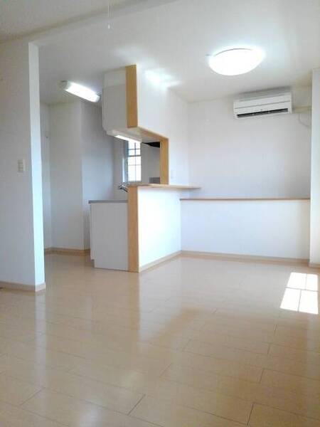 【日向市 アパート】対面キッチンタイプのLDKは広々11帖!!照明つき、ウォシュレット、洗面化粧台、浴室乾燥機、エアコンなど設備も充実しています。