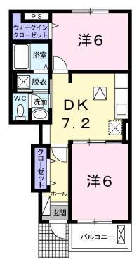 | 間取 | 2DK | 間取詳細 | 洋6 洋6 DK7.2 |